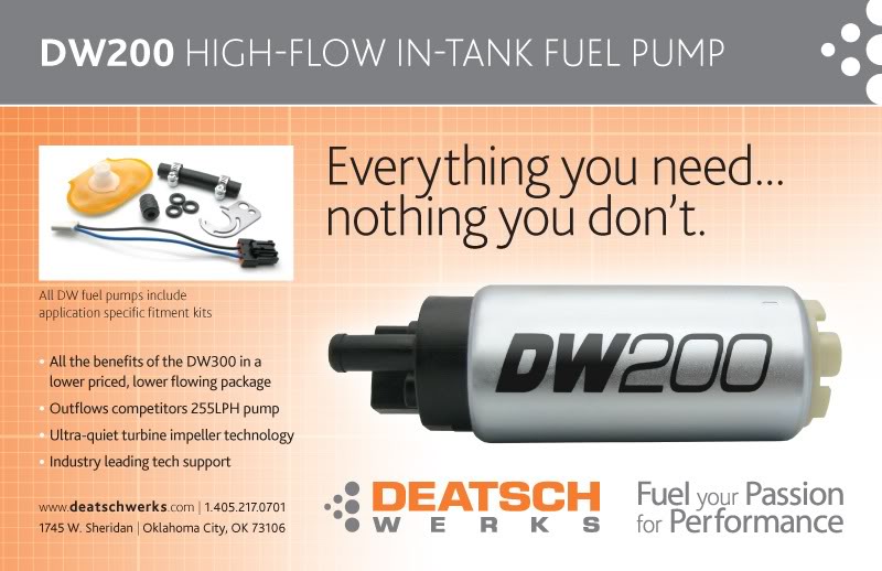 One size does not fit all, so in true DeatschWerks fashion we have added two new fuel pumps to our line-up. Introducing the 265lph DW65C and the 255lph DW200. Along with our popular 320lph DW300, DeatschWerks has your fueling needs covered.