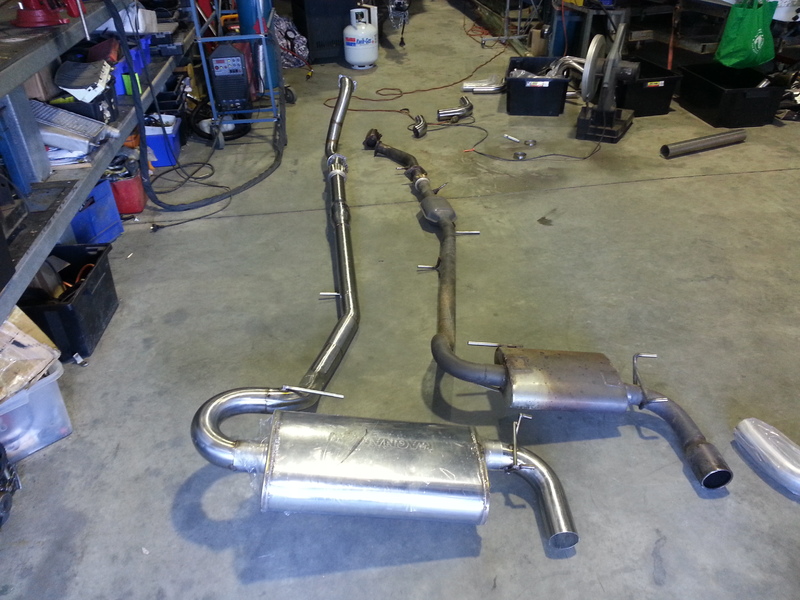 New exhaust, 3" mandrel SS. V band at the dump pipe, high flow 'cat' and the biggest magnaflow that fits.