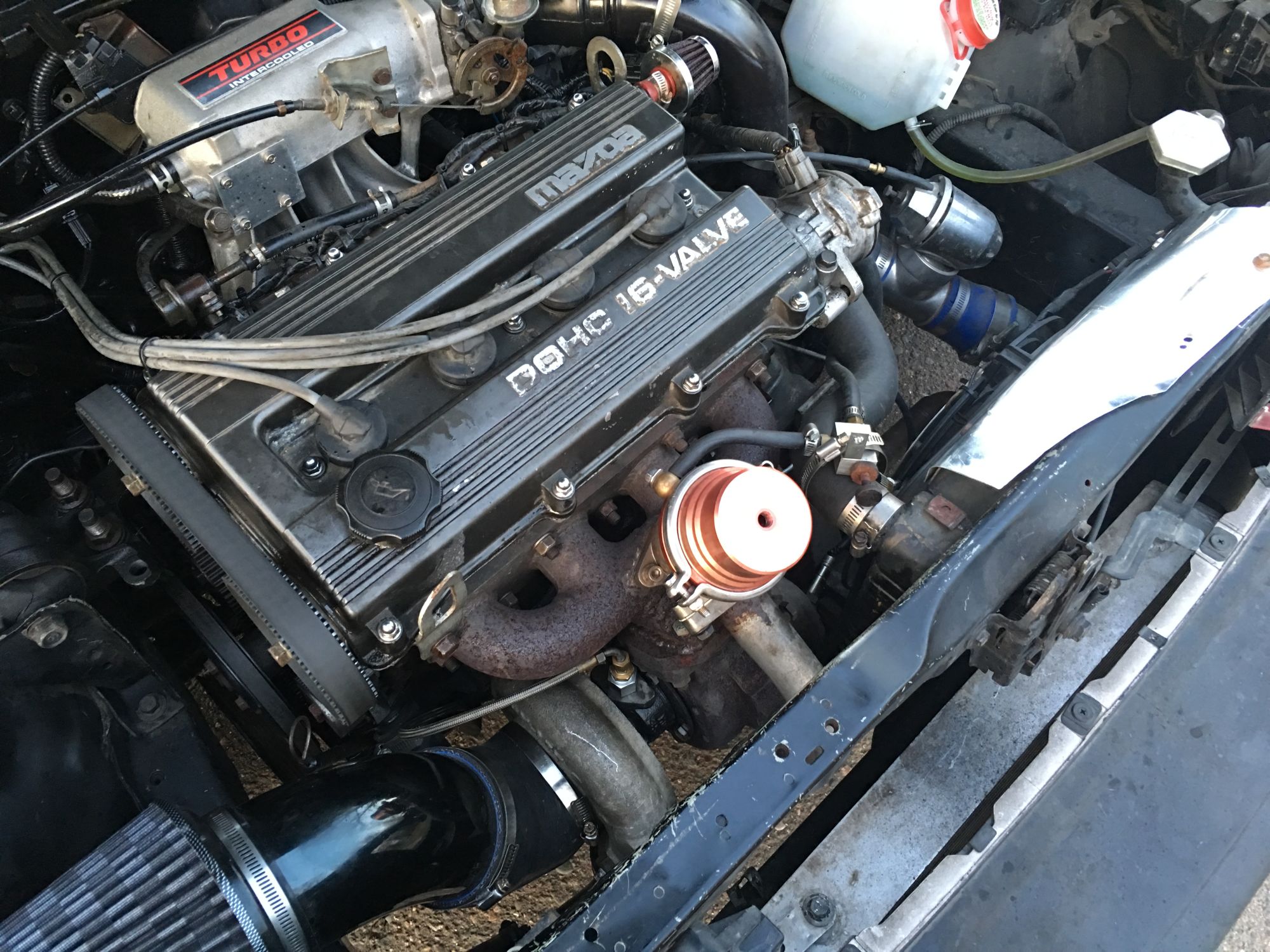 Hi guys I'm new to the forum and mazdas in general so I need some help. I just bought a 1994 Protege with the 1.8BP DOHC engine. The guy before me owned it since 2009 and while he owned it he did a lot of mods to it. As it's running now it has a holset HX35 turbo, GTR intake manifold, gasket matched with cylinder head, 550cc RX-7 red top injectors, 3 inch down pipe, and H-beam rods. Running mega squirt DIY for ECU. There was no pcv valve or breather filter on the valve cover when I bought it and i haven't gotten one in there yet but there is oil coming from the pcv valve hole. It's not like spraying out but it leaves some under the hood after driving it for awhile. I tried plugging the hole for now but the turbo begins to smoke badly when I do that so I suspect that it pressurizes the crankcase and the turbo can't drain well enough then. So it's just open for now. But I figure the oil coming out has to be from too much oil under the valve cover so it spits it out when it gets to the baffle. So I looked to see if the drain holes in the head were clogged and three of them only seem to line up halfway or so with the holes on the block? Could this be causing too much oil to stay in the heads and blow out the pcv valve? Or should I be looking more into possibly piston rings? Block was supposedly rebuilt not long ago when the H-beams were put in after he bent the stock ones. If you have any questions for me please ask and I'm sure I'll have some more to ask you too. Thanks everyone!