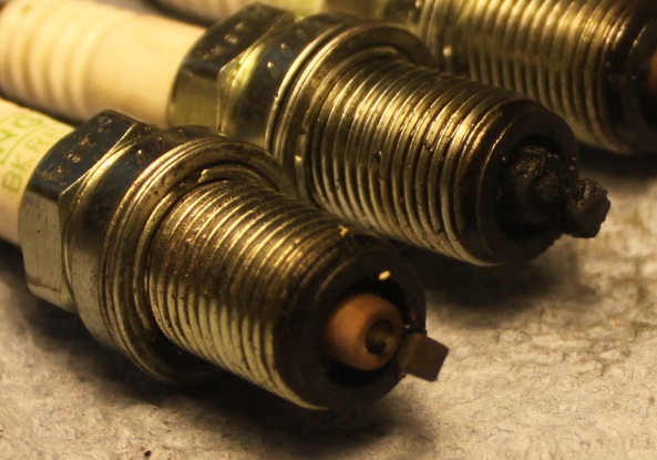 I removed the plugs today, here is a shot of a good one and the one that is bad, now the big question, head gasket or oil rings?