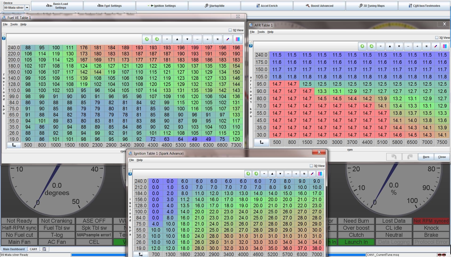 here are my maps, let me know if you see anything odd. (VE map over 180kpa is stupid rich, as i have not hit those cells yet to autotune).