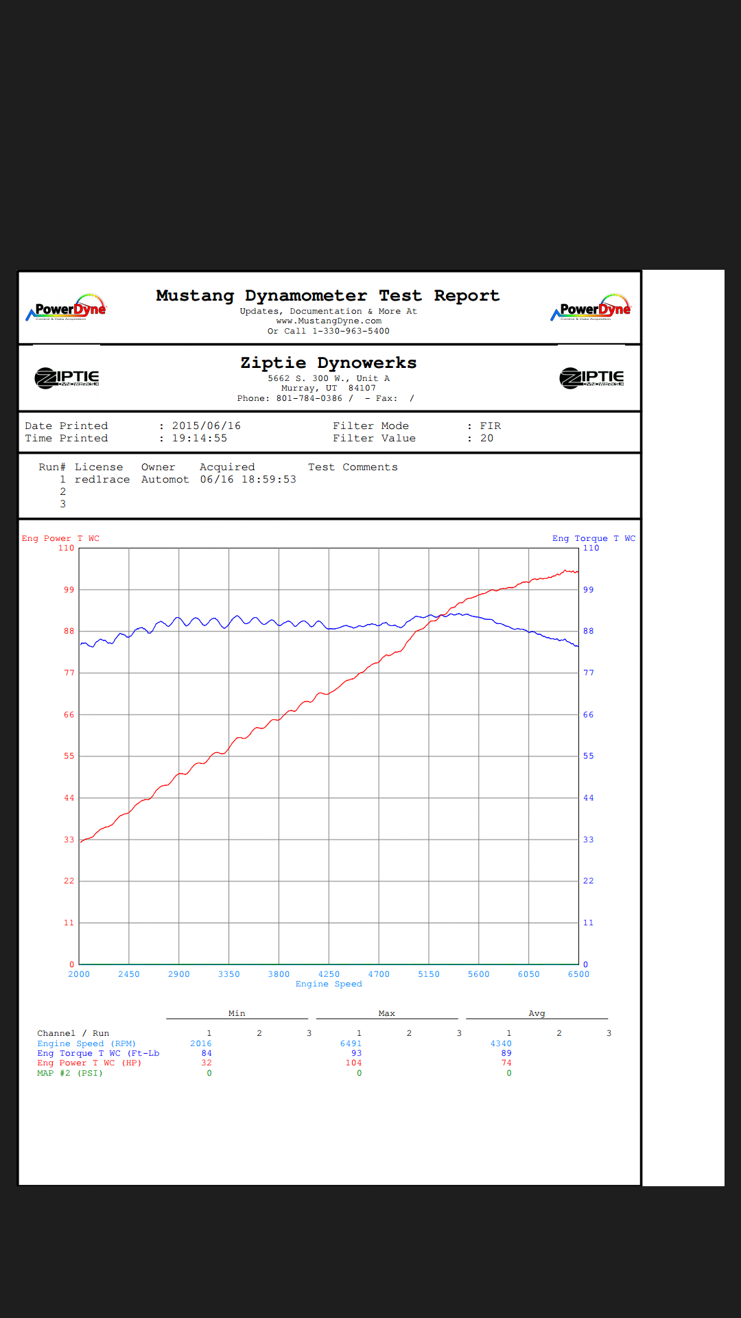 you are expecting too much. a 95 makes about 128 so it should expect somewhere between 104-109 whp depending on the dyno. mustang dyno you expect less.