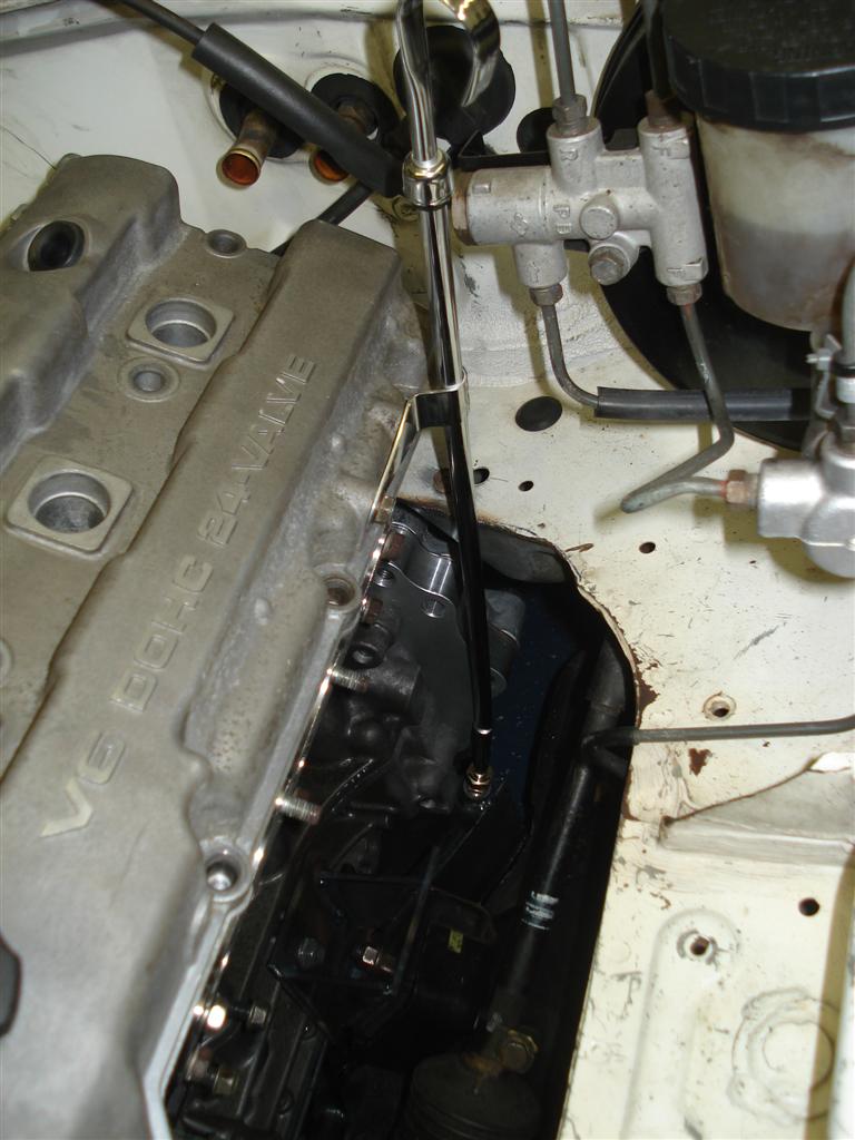 And now for the best (for me) part! This $18 'universal' Moroso dip stick was as close to a bolt on as can be. This is it installed unmodified. I have to trim an inch or so off the top when I set the stick height to my sump volume, but that's simple with my tubing cutter. Man that's a killer break.
