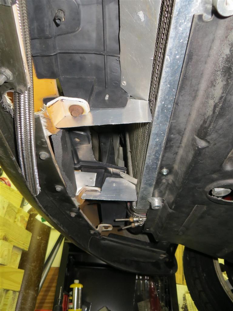 I went with the Earl's 16 row ~15x6x2" cooler and their new brackets which look like the Setrab brackets. The Earl's cooler uses common -10AN o-ring fittings and the cooler is inexpensive. Looks to be decent enough quality. The brackets fit the car with minimal drama. Typical oil cooler locations on my car are already occupied so after too much staring I decided to mount it horizontally below the opening in the bumper. I cut a small hole to feed it and built sealing shrouds to keep the air pressure in. Everything is above the bottom of the front lip. I will just have to be extra careful when backing out some driveways. I may build a skid plate on the front but probably not.