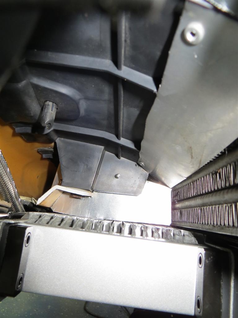 The cooler with brackets and a simple temp sensor mount block I made which conveniently uses the -10AN o-ring fittings supplied with the cooler. I used Russel tight R 90's screwed into the cooler to save a half inch or so.