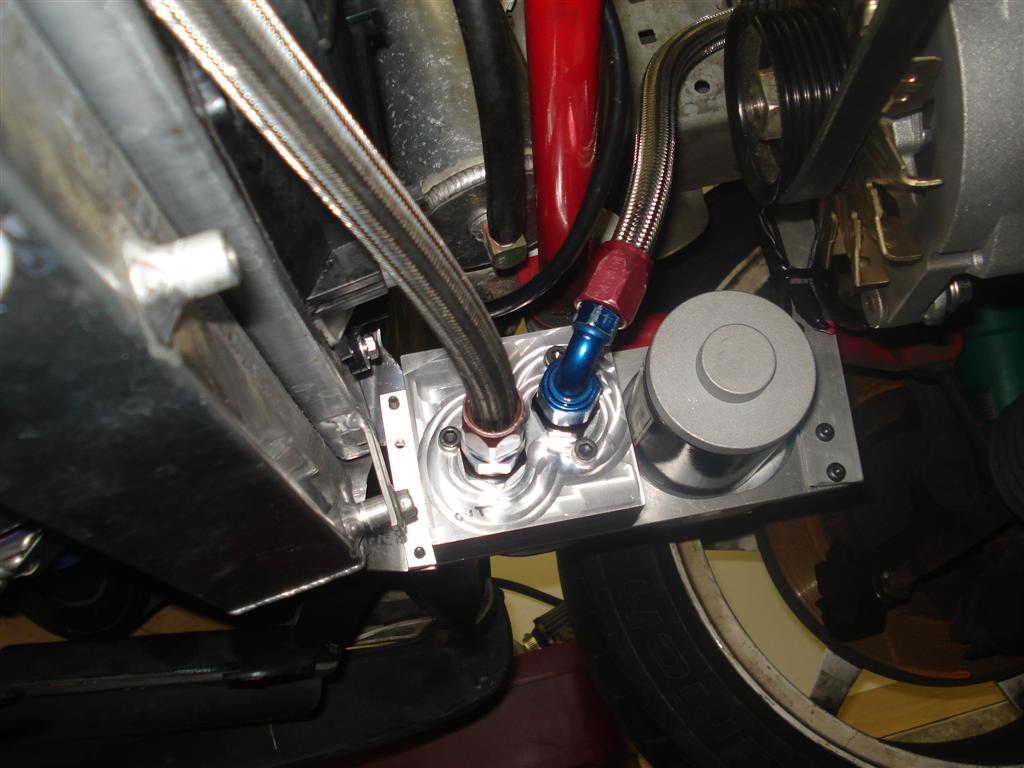 My oil temp housing was the perfect place to put the Vibrant -8AN check valve.