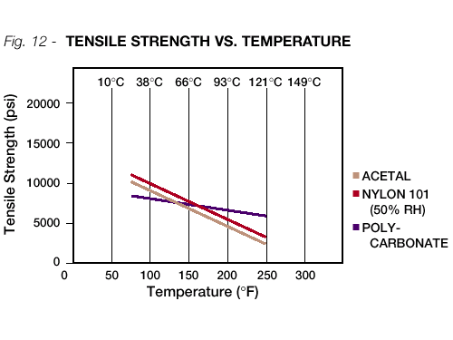 Say that their polycarb's tensile strength seems to change from about 800 psi to 700 psi between room temp to 250F.