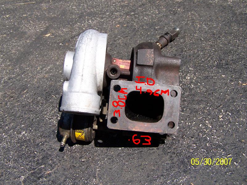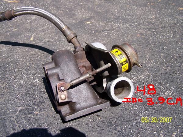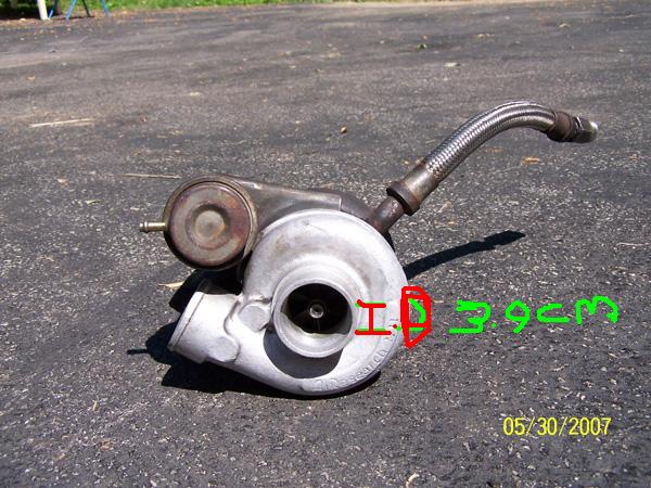 Alright, here is all the info along with pictures. The inner diamater (I.D) of the intake of the compressor is 43 mm. The I.D of the outlet of the compressor side is 39 mm, and it says .48.