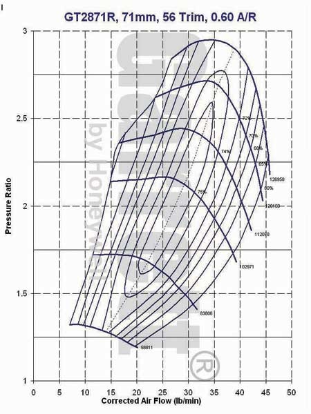 i just dont see the point of the 71mm wheel over the 60mm wheel when we talking about gaining only 5 more lb/min capacity and going from a short fat efficiency map to a thin tall one...meaning it's a better turbo for higher boost but lower flow rates.