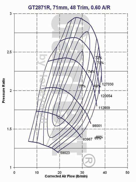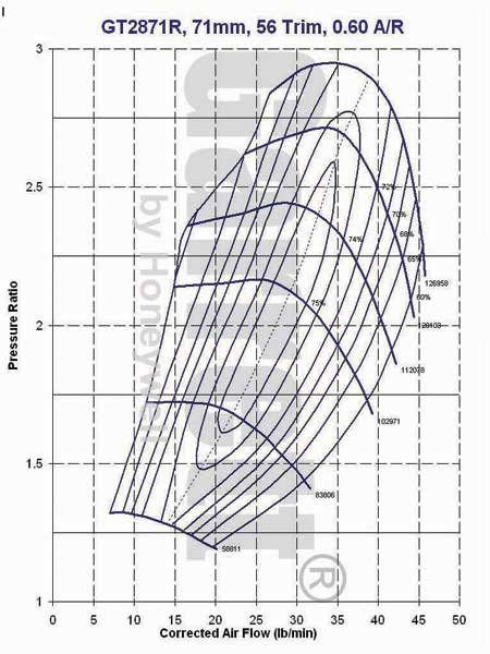 Hustler, for your compressor map posting, check the different trim 2871's as well...