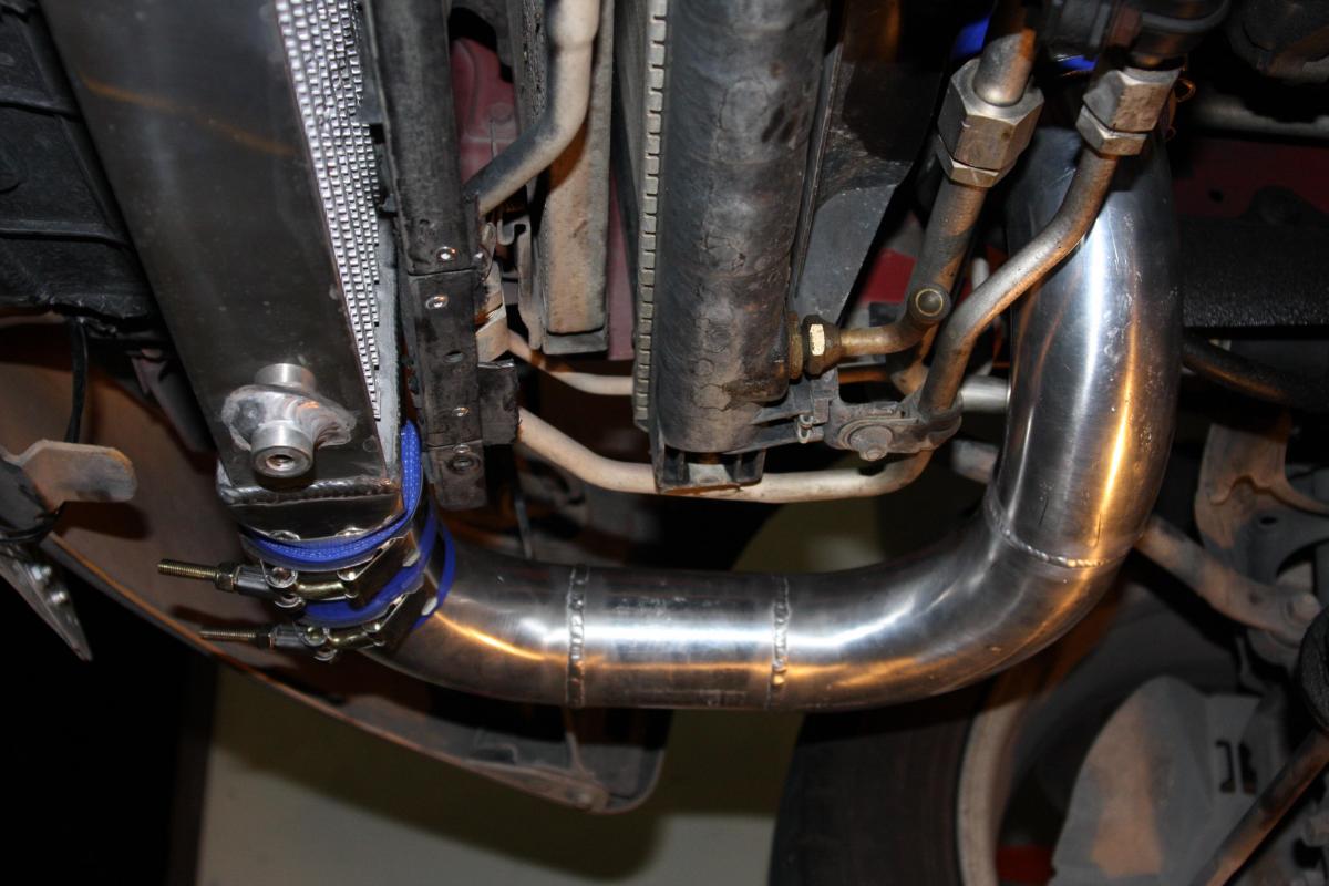 As Apariah mentioned his car won't have ps, I just didn't want to remove it on mine so I zip tied it out of the way. As for the intercooler, that was as close as I could place with the bend provided. He'll be using an under tray and radiator plate so i don't think it'll be an issue.