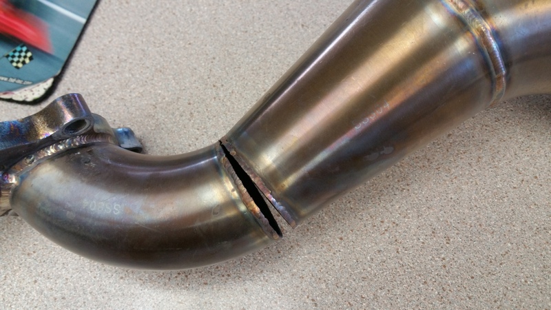 The only thing I noticed when removing the downpipe yesterday was that the exhaust seemed to be pulling down on the back side of the downpipe. I'm assuming that was putting stress on the weld that cracked and thats why it split. I fully plan to add a brace and see what happens this time.