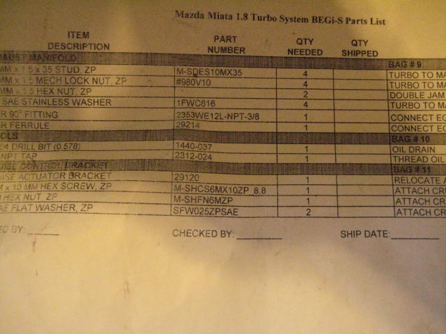 i recieved my begi shaghai kit for 91 1.6 yesterday but without a parts list to confirm all is in the box, begi were sposed to email me but it seems they forgot, does anyone have a parts list which they might be able to either scan in or write out for me as im returning to the uk on tuesday and realy want to be sure its all there.