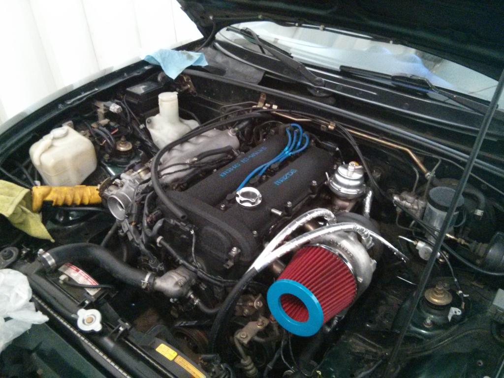 So a few months ago I decided I was sick of dealing with my coldside supercharger and started researching turbo options for my 99 NB. Its not that I didn't like my supercharger, the hardware in the kit was great, support was awesome, it was fun, added a good deal of power and I could even smog my car with the kit in place. The power card piggy back system and its limited capabilities its where I had issues. I suffered from lean spikes in the boost transition and tried just about every setting combination I could think of to get rid of the condition. I went through my entire kit multiple times, checking for boost or vacuum leaks to no avail. I changed O2 sensors, exhaust components, sensors, injectors, you name it. Eventually I switched to E85, you can run it on the stock ECU with 440cc RX8 injectors. I didn't see any more extreme issues with my kit after I made the switch, but naturally I wanted more power. I could have upped the pulley size and gotten away with more boost on E85 due to its high octane rating but the lack of charge cooling on an intake mounted blower really starts to show its weaknesses here. After toying with he idea of going the stand alone EMS route for better tune-ability I eventually convinced myself that I wanted to get rid of the blower all together and go turbo. The lack of charge cooling is what really pushed me over the edge. For moderate power gains and the use of a standalone I think the coldside supercharger kit would be a great fit, especially if you just want to swap to your stock ECU when smog rolls around every 2 years. Like I said, its a well made kit, its just limited by design. I was pretty fortunate and able to sell my supercharger kit rather quickly to a member of this forum who shall remain unknown for their safety . I wouldn't stay naturally aspirated for long though, my timing was pretty good as I was able to pick up a nearly complete turbo kit locally form 18psi which he bough previously form mx592, we both live in the Sacramento area of CA so it was a super easy transaction. 18psi a super nice dude and I felt great about the transaction after meeting up with him. I've spent the last few weeks ordering bits an pieces to make the kit complete and planning out how I am going to implement it. My goal is 250hp as this vehicle is my daily driver. I hope to get the DIYPNP in this week so I can tune while I'm still NA and switch back to gas, the 440cc's are still in so I'm still running E85 out of laziness.
