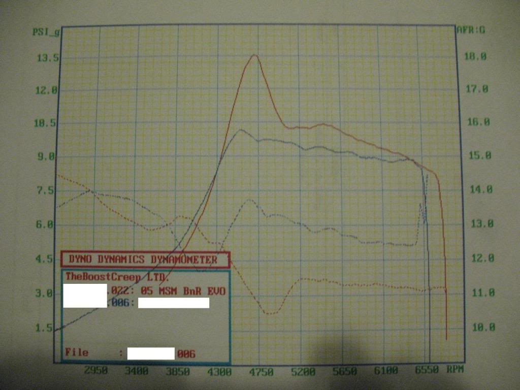 I am using a manual boost controller and can't hold peak psi - it drops like a rock, but not linearly - see attached 13.5psi peak line. I am going to try tapping the cold side piping as you suggest. Would the sharp drop and then slow taper after peak (shown in attached) be indicative of being solved by tapping the cold side, or is something else causing the problem - like too restrictive of a cat causing a weak actuator to blow open or similar?