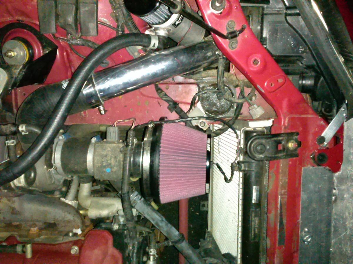 Now, my intake hangs off the turbo sandwiched in-between the exhaust manifold and the radiator. It just looks wrong...