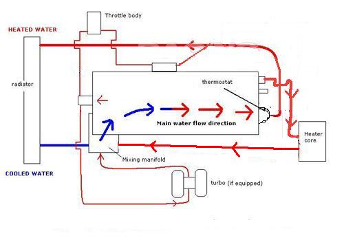 And yeah, the arrow between the front outlet and the throttle body is backwards. Water will be coming out of the front, going into the TB and the oil cooler, and then heading up into the upper radiator hose.