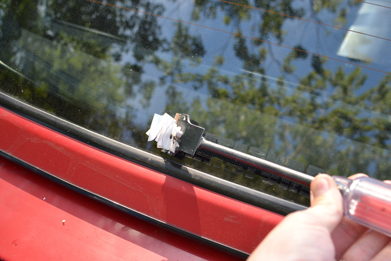 Scraper wouldn't fit back there so I just used a razor blade in my hand. Didn't pull the head or tilt the motor forward. Pain in the ***, and back, and took a while, but it worked.