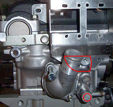Why will this not work? I can use the plug on the bottom right, above the water nipple for the green topped senor, then hopefully use the plug in the side of the water neck for the gauge sender.