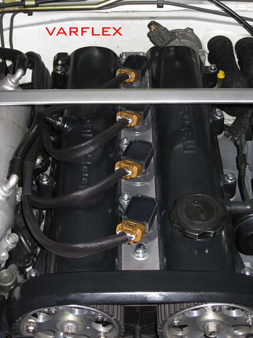 After almost a year of perfect service with my COP system my car started to loose tach signal. After a while longer the car completely shut off while driving. Almost one week went by as I broke down different parts of the wires searching for the new found issues. I found the heat from the valve cover cooked the wires and 135c heat shrink. I copied SparkTechs use of varflex Mil-spec heat sleeve to protect the wiring. I hope this will help others using COP setups.