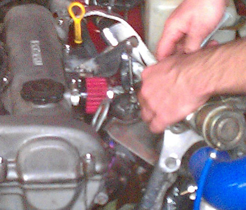 The turnbuckle was tightened to take any slack out of it... it's not rose jointed so the turbo could still move up a little bit but I figured this was enough to help support the weight.