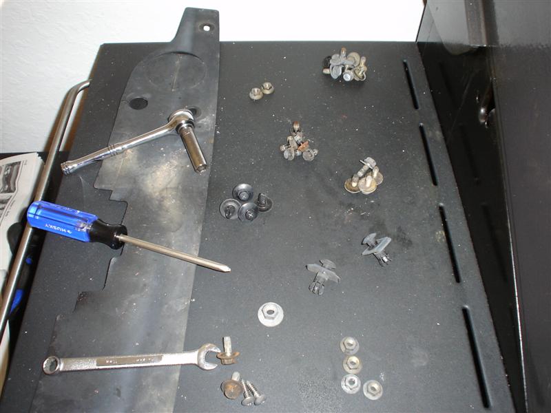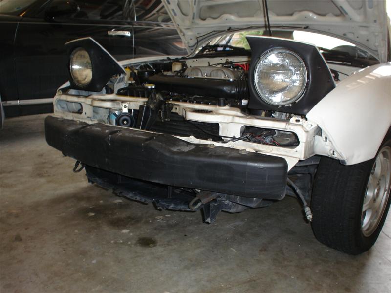 1--took the front fascia off, since I'll need to get in there to mount the I/C and whatnot....Followed the Hayne's manual to the word, no need for any improvising...