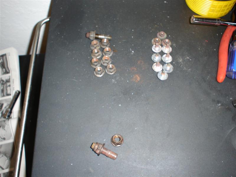 3--Removed heat shield/headers and down pipe/lower exhaust....Ok is there anythign to "figure out" no, just remove all the nuts...did it take a LONG time, with alot of cursing, some busted knuckles yes!!! I DID improvise here, haven't heard of people doing it liek this, but it worked for me...maybe everyone does it, and just doesnt say it..so...