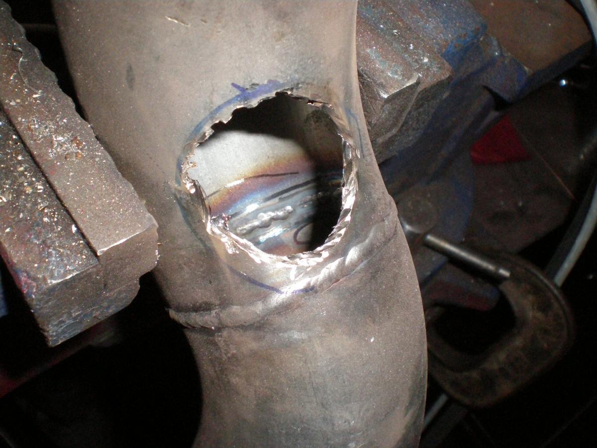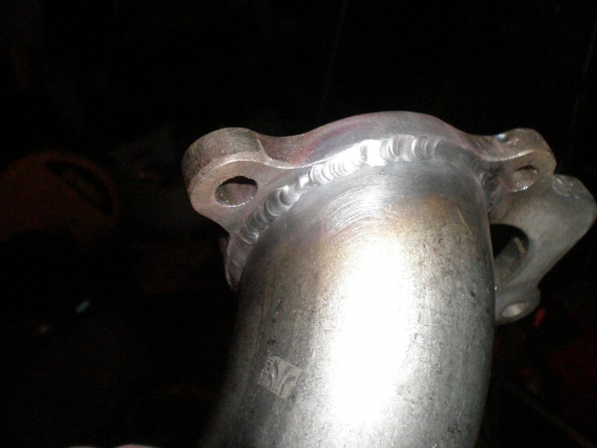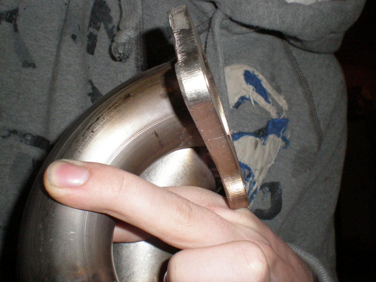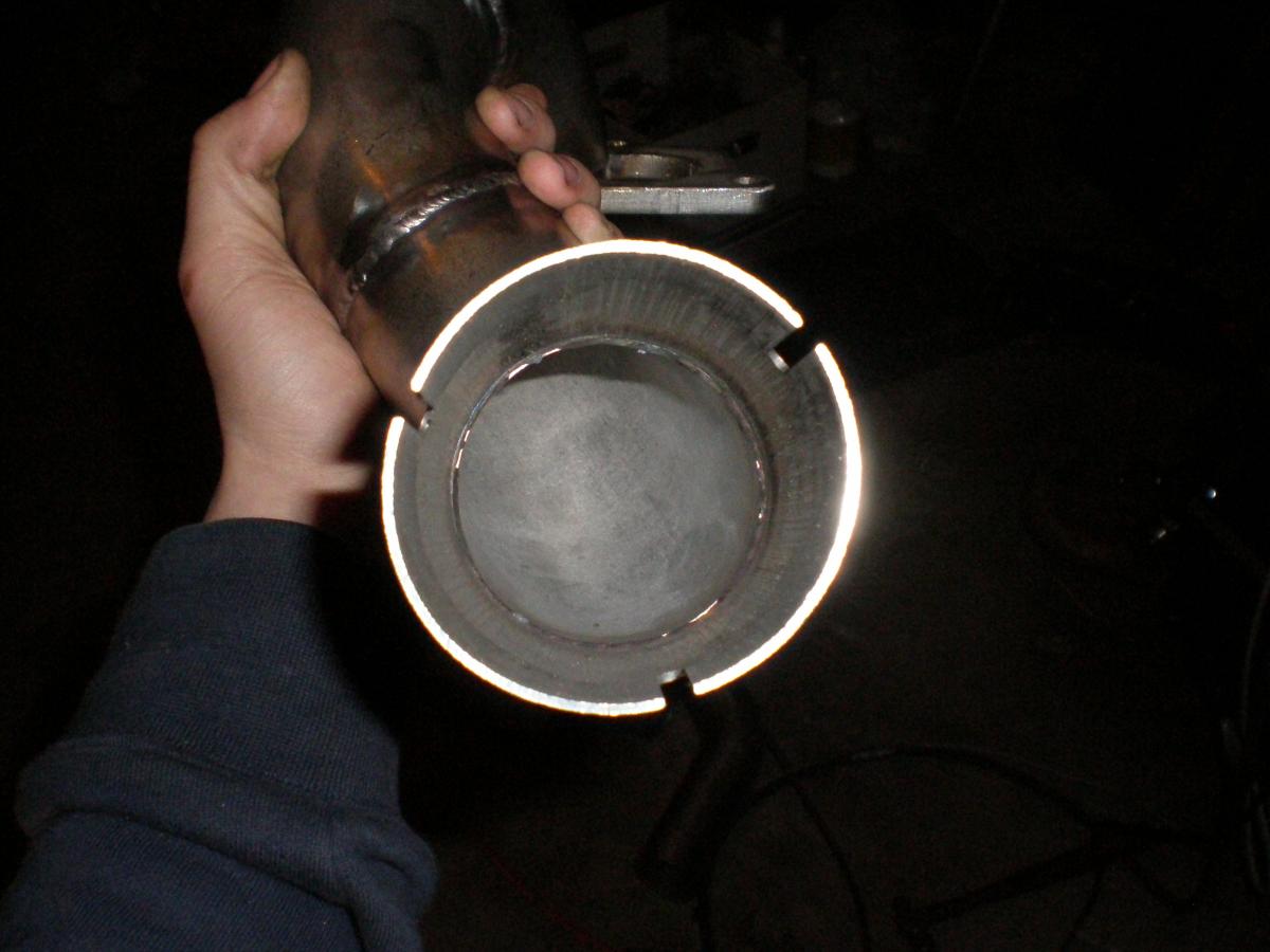 See pic 13 on my second set of pics. There was a gap that wouldn't work for connecting the lower and upper downpipe together. So i just turned down some pipe that was a bit too large until it was just right