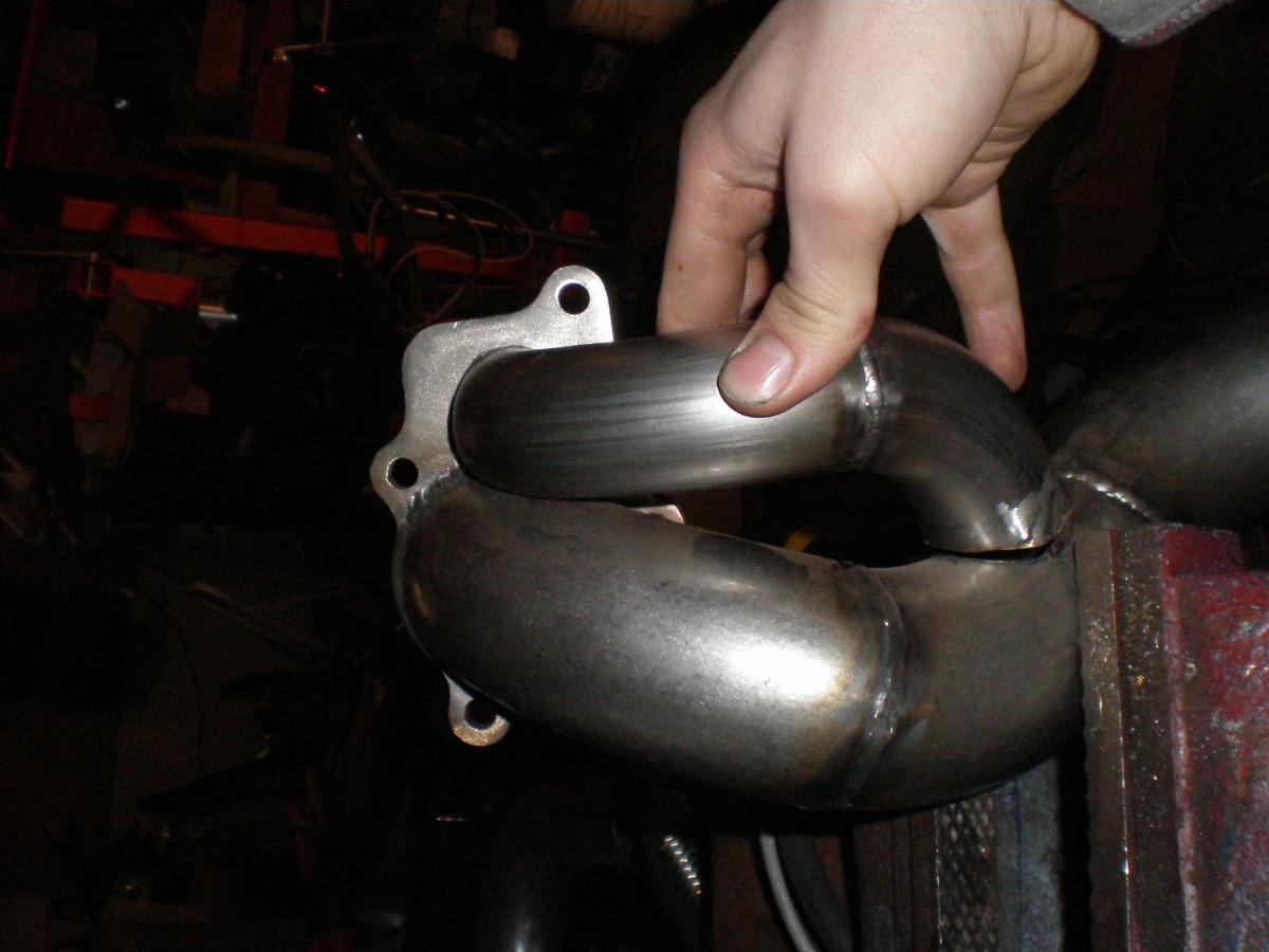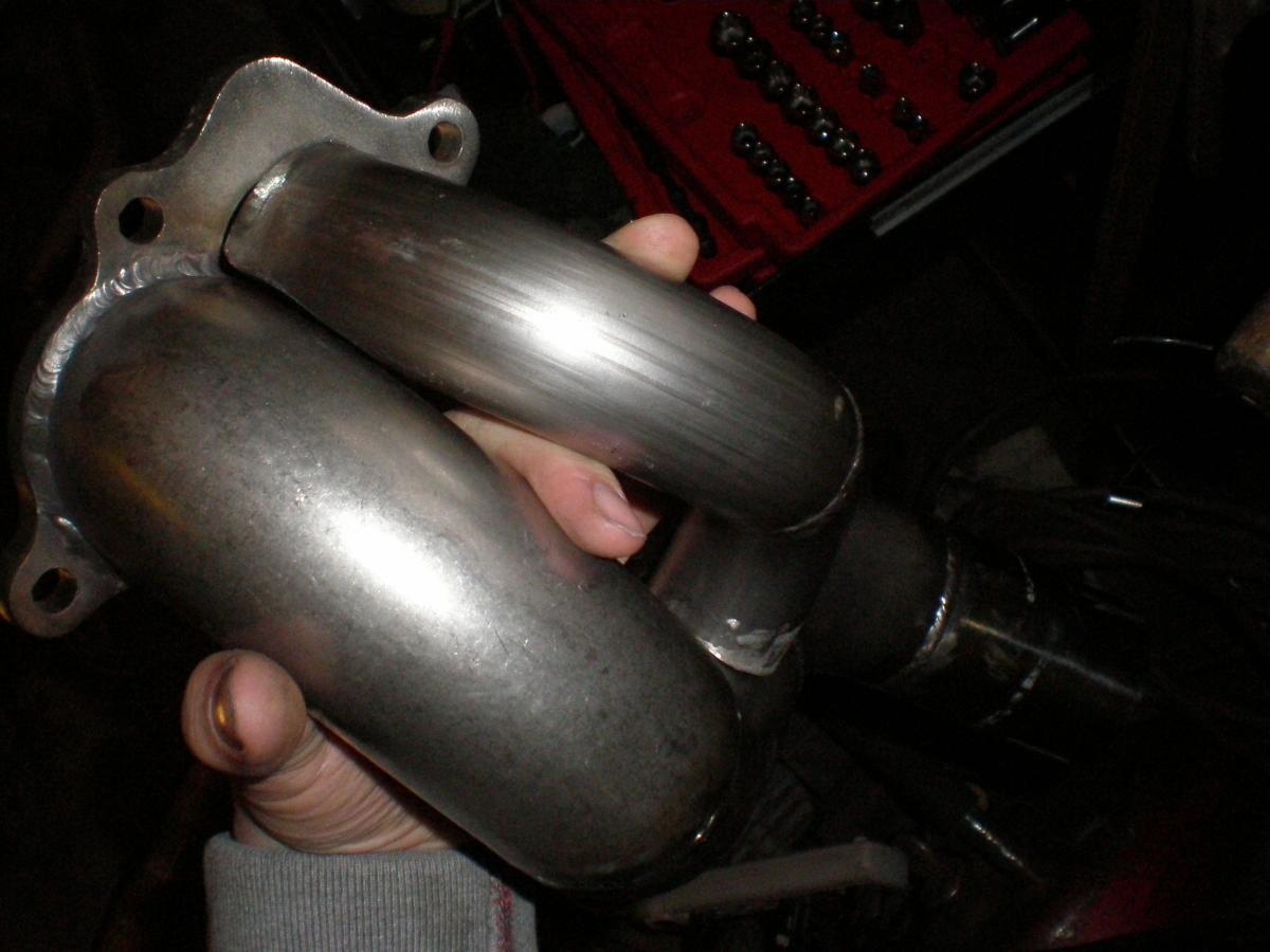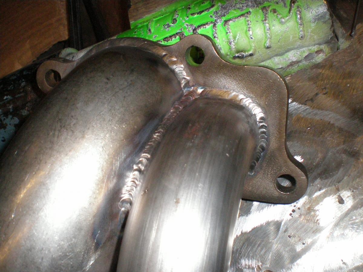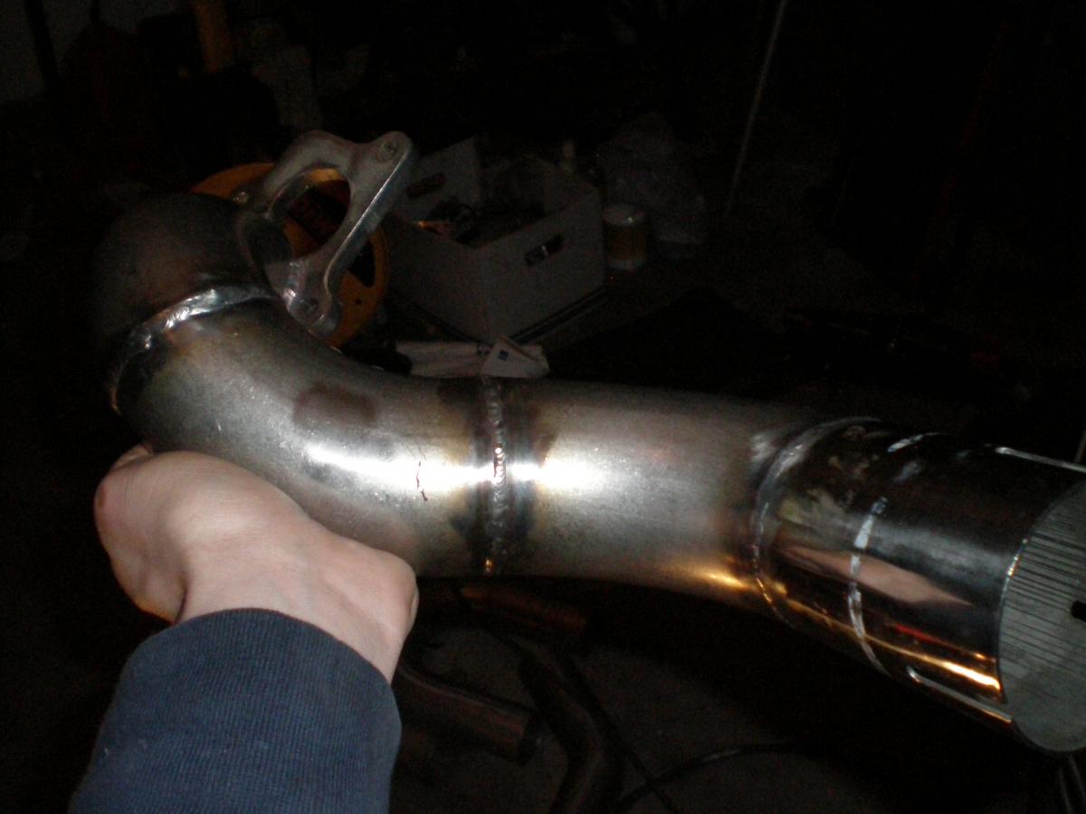 Tonight i got the first section of my 3 part exhaust done. Turned out better than what i expected although due to the limited space i couldn't route the wastegate port exactly where i wanted it. But hey; for my first time ever building an exhaust it will work.