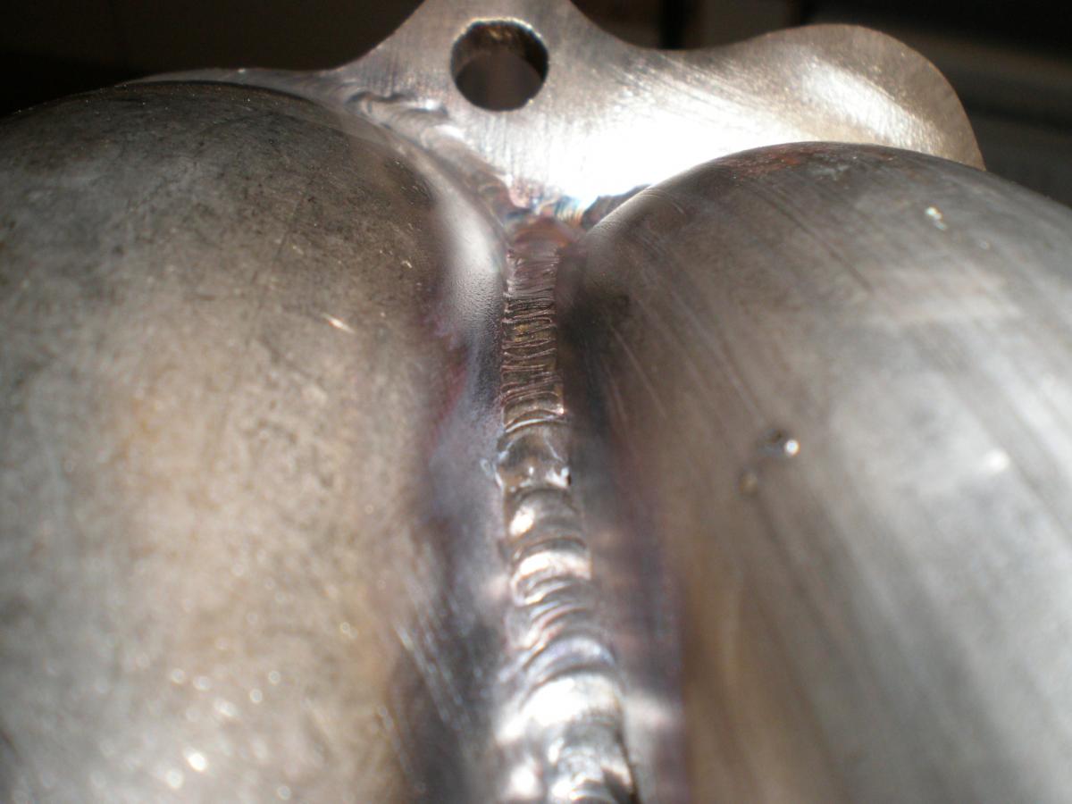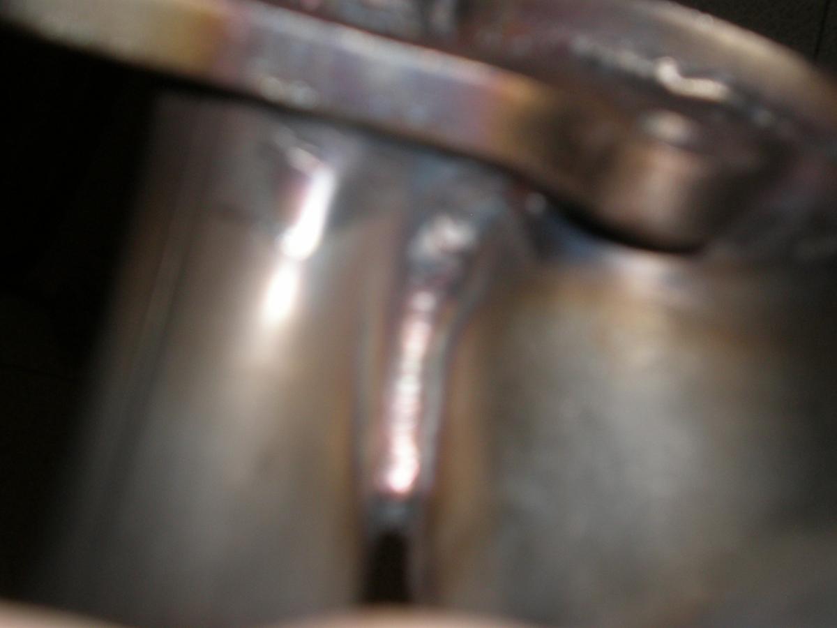 5. Inside flange view. I only got crystals 3 little times from the angle of the tube being to sharp to get my tungsten in there right. I also welded the inside for added strength ( yes im going to sand this down nice and beautiful)