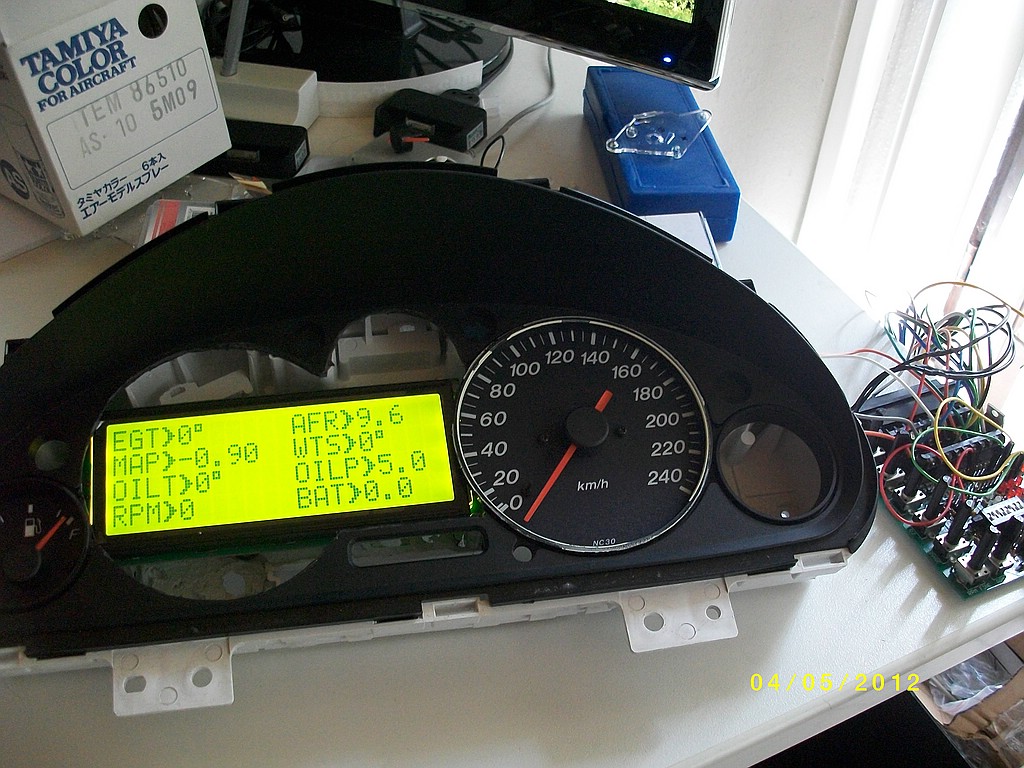 the cluster is actually in the car, but I have to redo some of the wiring and change the gauge bezel...