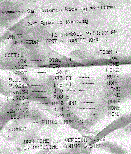 To be fair to my ego, practice isn't everything. I have many passes down the 1/4, 70 recorded runs in this car. Probably over 200 counting other cars.