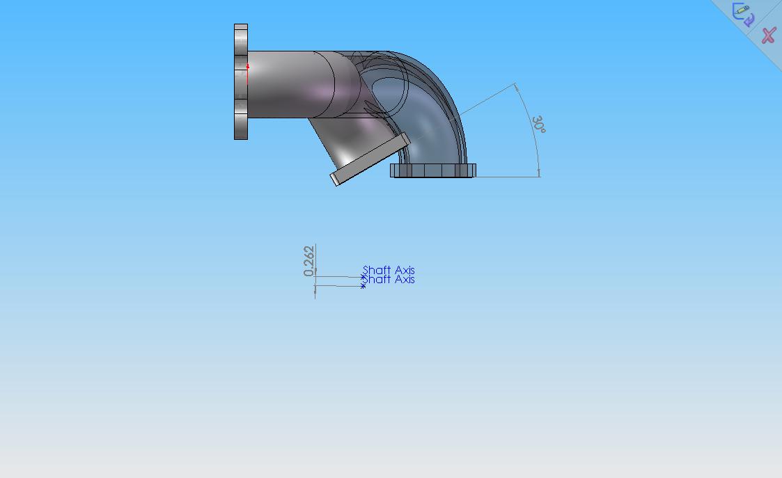 A 30° turbine flange angle from horizontal gets you a turbine shaft height almost dead nuts vertical and .262" lower than the standard Absurdflow low mount manifold. There should be clearance downwards, and if you aren't using a vband or .86 housing there should be lots of clearance with the motormount.