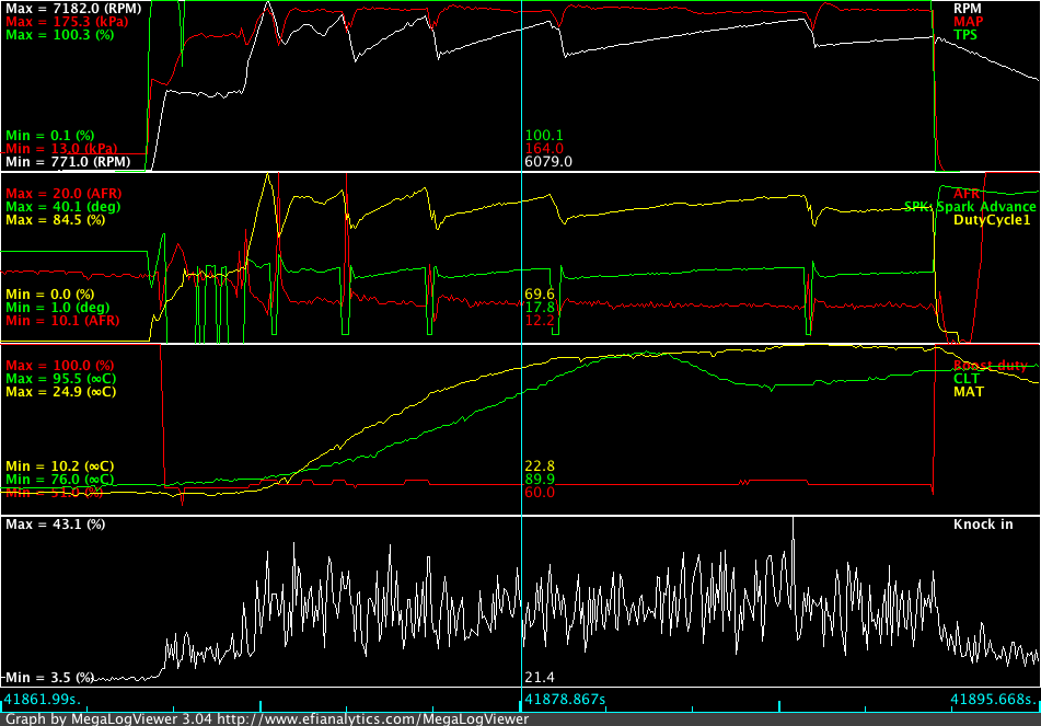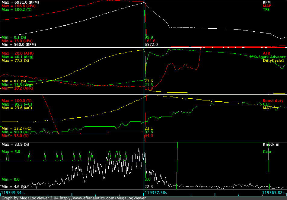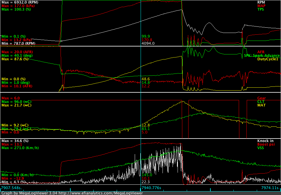 What was happening: casual spikes on rpm signal and boost (psi) but not on map (kpa)