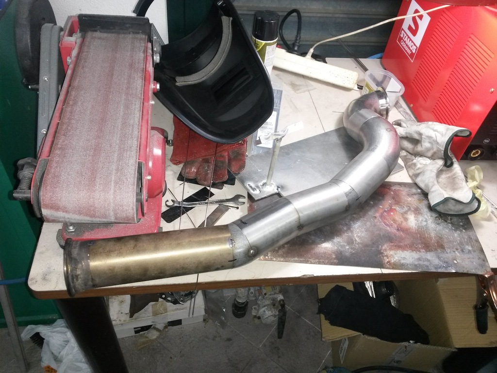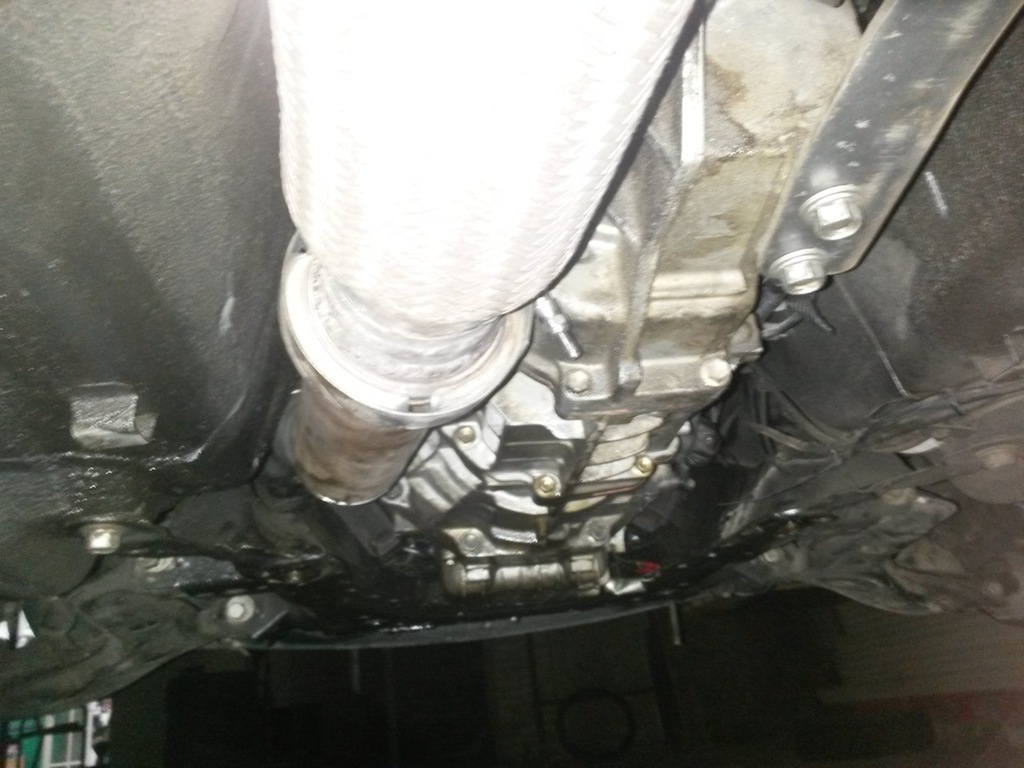 The only way to install the downpipe is from the upside, removing the rod under the gearbox. That's the only thing required to install it, after that it can be reinstalled