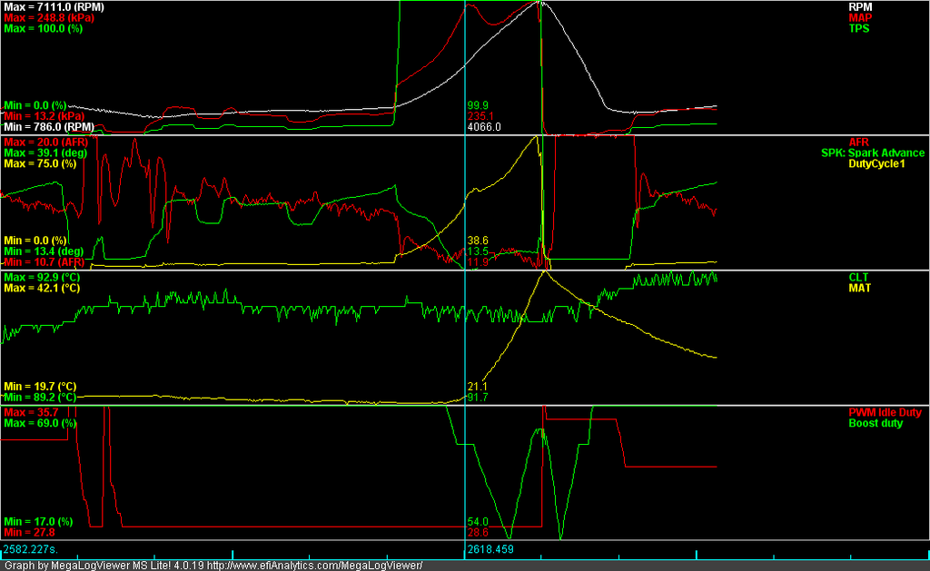 if you look veeery close you can see the red line drop from 240kpa to 205kpa I don't know how to rescale the boost graph, it never worked with me