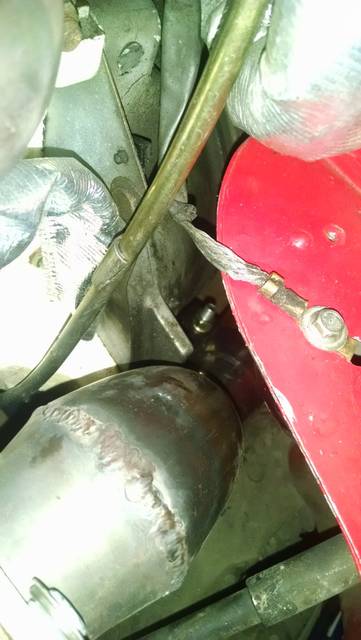 Exhaust brace setup. Seems to work ok as tested by unbolting both Tial V-Bands and having it keep things stable. Time will tell.<br />