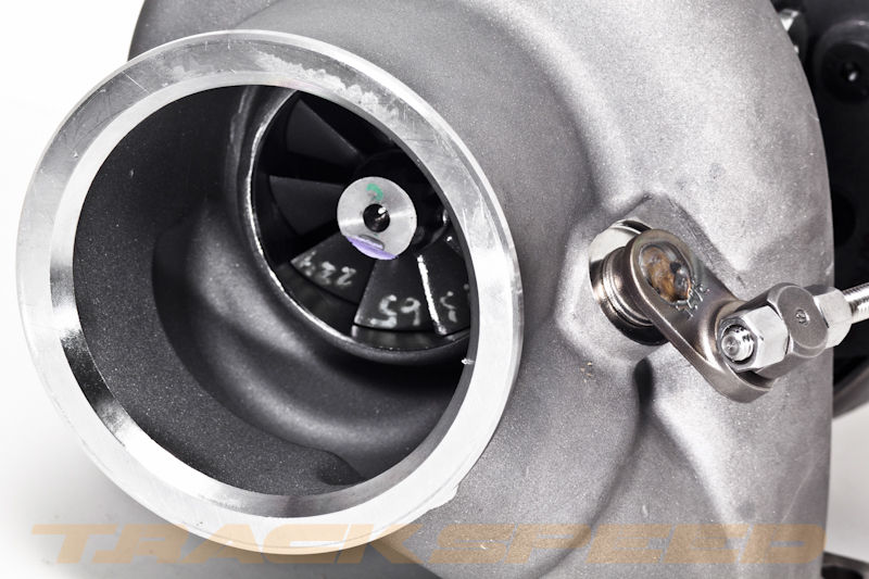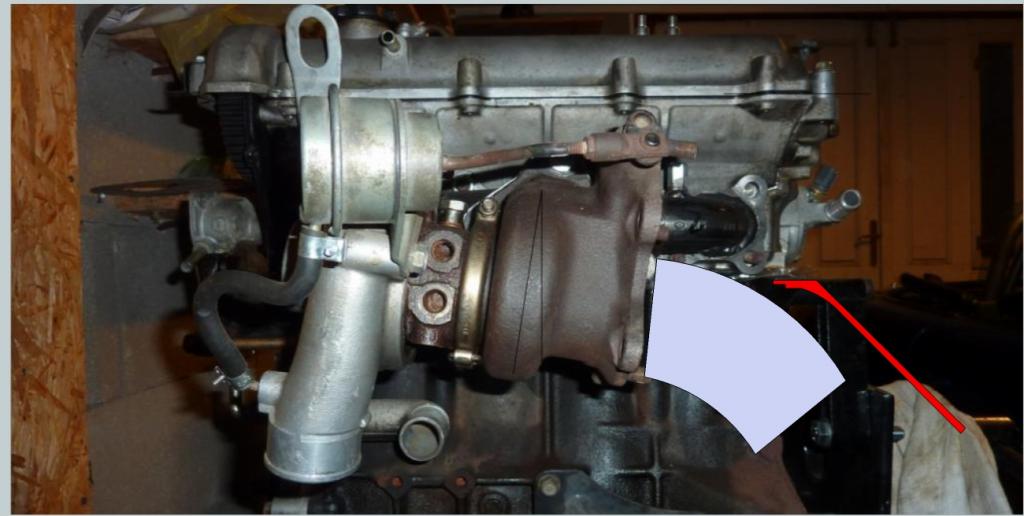 Also in this case the turbo is rotated by 10 degrees. This means that the downpipe angle leaving the turbo is 55 degrees as opposed to 90 degrees and more in some of the other types.