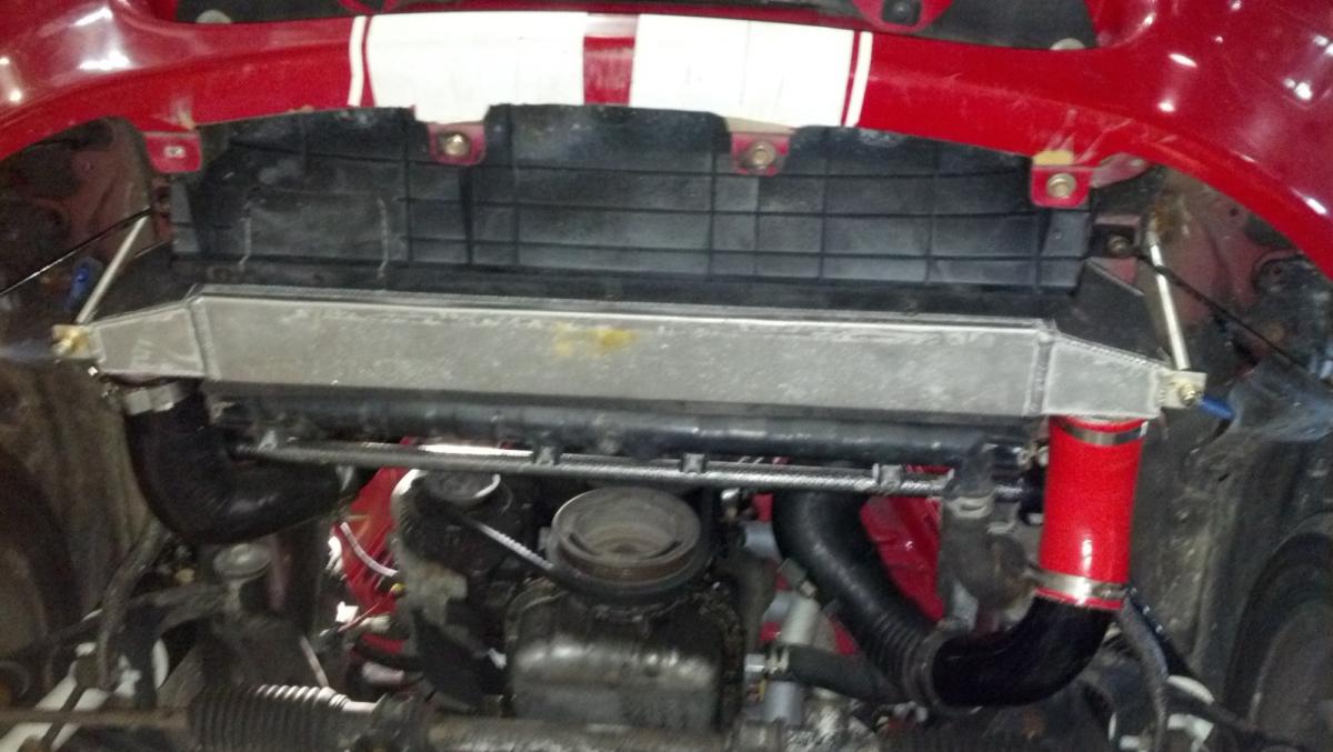 hey guys i dont know if anyone has tried this intercooler as an option. i used to do dsm's so i had this intercooler kit laying around. its their 1g dsm street core. i dont have ac so the core sits up against the radiator besides a rubber seal i put between the two. i was able to retain the plastics that box in the radiator to the mouth of the bumper and the splash guard as well. they are a good company and ive used their intercoolers on my dsm's. so its a decent option for under $350. just place the cooler upside down so the outlets are at the bottom