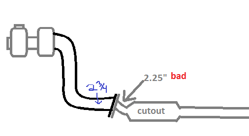 I'd like to dump the cutout immediately after the DP with a turndown. Because racecar. The cutout size I'm looking at is 3" because that would be awesome to have zero restriction there. Alternatively, I could go with a 2.75 to match the DP, but yolo.
