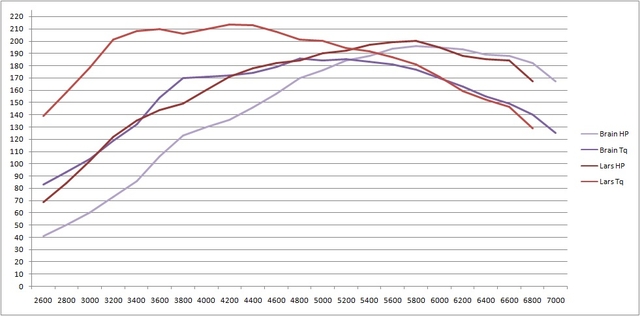 I have a GT2860rs .86 turbine housing, slight overbore, low compression, and 99 head and I'm seeing about 200wtq at 2700rpm. If I had a VVT head on that car, man it would be crazy low. I realistically feel like the car "moves" at 2250rpm even with the trailer on it. When I'm cruising on the highway, I leave it in 6th unless we go below 2500rpm because it just looks weird and it's not a Corvette, lol.