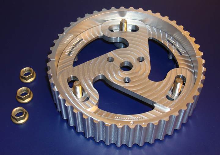 Aluminum Cam Gears ready to go at 99$ shipped a piece. These are the lightest cam gears out there, and are meant to be a bridge between performance and value of the carbon based units which will be $139 a piece. These fit 89-97 both gears, 99-05 exhaust gears. The 99-00 intake gears are coming soon.