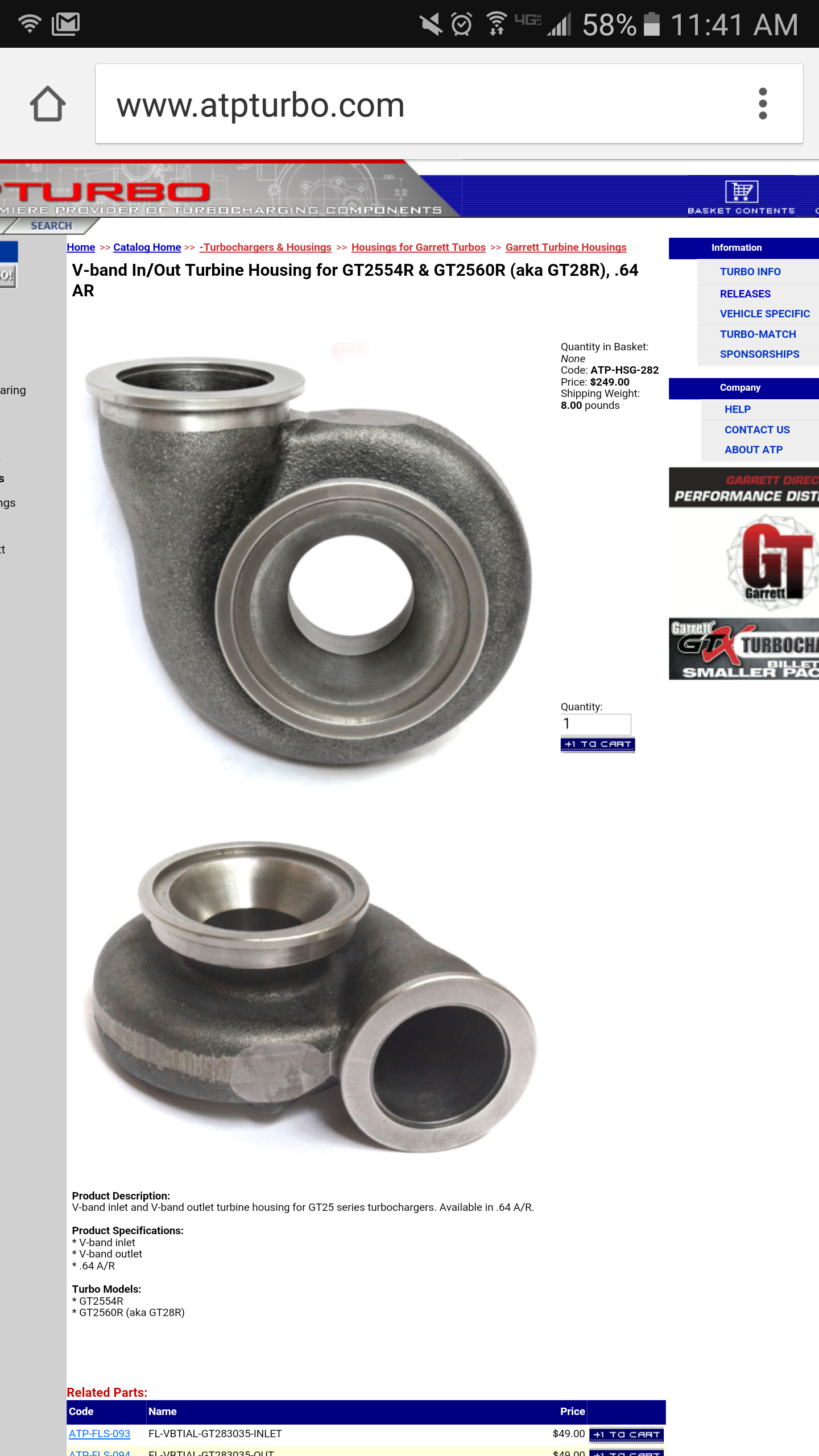 On the page with my turbine housing, atp lists related parts at the bottom of the page. (An inlet and outlet flange) those flanges fit gt28, gt30, and gt35. As far as I know, atp is the only seller of my turbine housing. So they must have the correct flanges, correct? Dont tell me there is a turbine housing for sale with no flanges that fit it. Please dont tell me that.