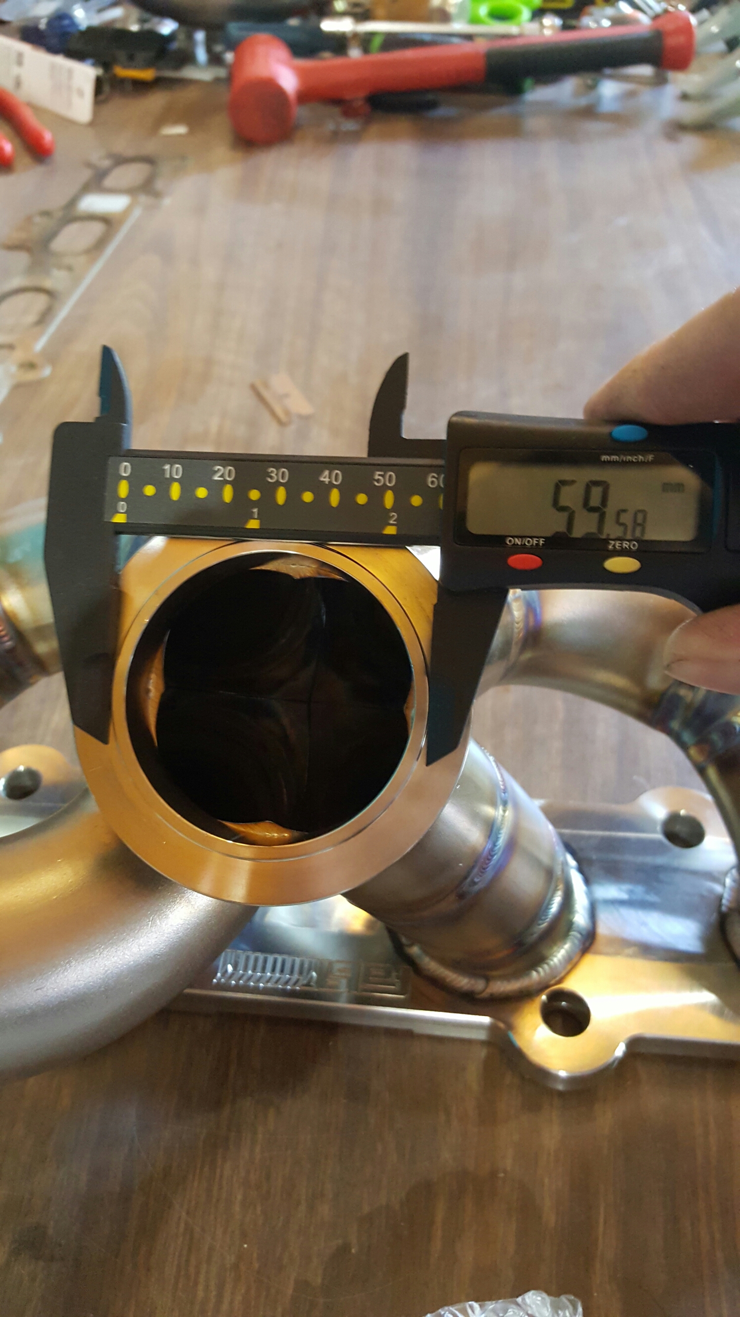 Pictures arent really in the right order but you can see that the lip on the inlet flange is too big to fit into the housing. And the outlet flange on the downpipe is bigger than the flange on the housing. Fwiw, inlet flange ODs match perfectly