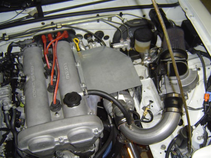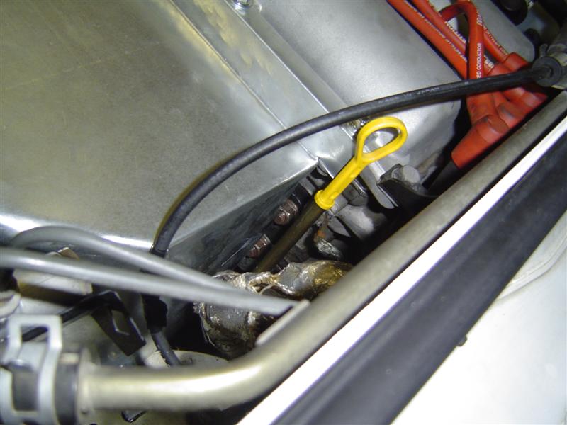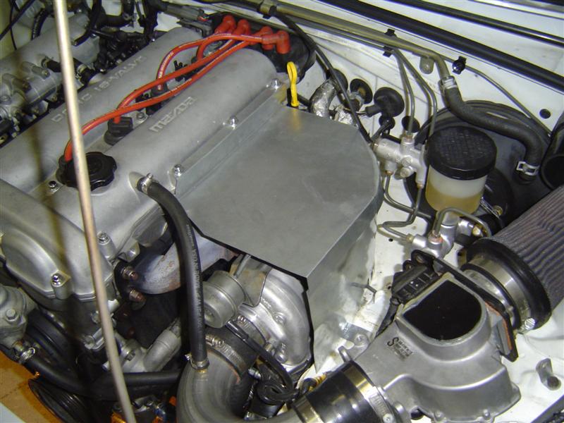 Well, not so ghetto anymore... I think I've got a respectable product. The two halves are not attached and have some clearance for when the engine rocks over under power. The cool thing is that it goes all the way to the engine block, so no leaking around the back near the dipstick to fry the heater hoses. This is still expirimental. I intent to get some much stiffer stock and really do it right, with some heat resistant fabric and what-not. I've got some hi-temp brake caliper paint... thinking I might paint it black.