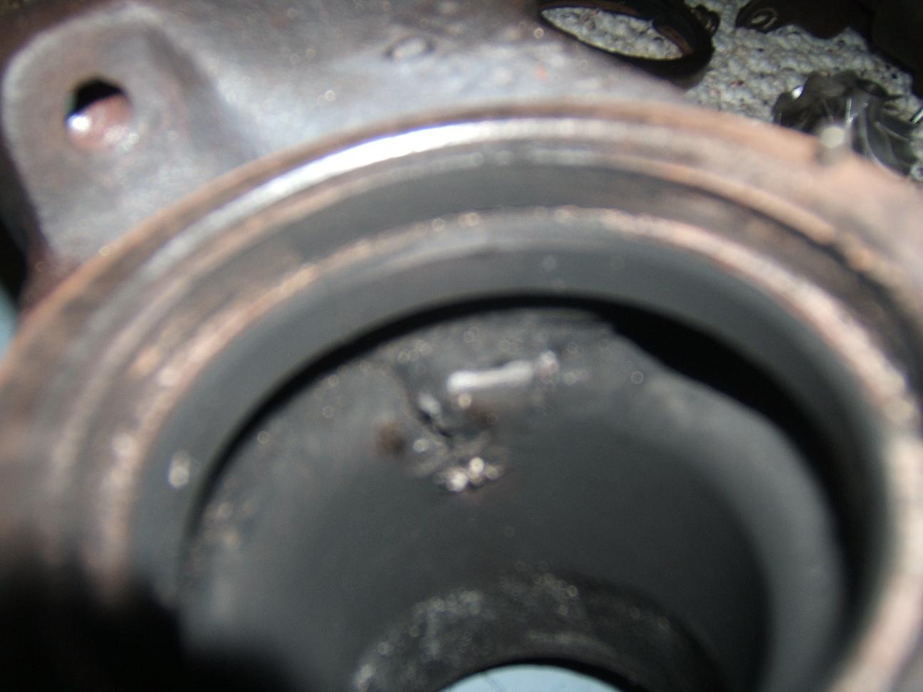 Here are pics of the turbine housing from a mitsubishi 13g turbo. I got it apart tonite and this is what i found. Lots and Lots of cracks. The cracks inside the outlet bore look more like some kind of melt down. I dont see how this happened without damaging the turbine wheel bit it looked ok. My question is, is this housing worth using, can it possibly be welded and machined and still work? (im a machinist so that would be free to do) Or am i going to have to spend the 200$ and buy a new turbine housing?
