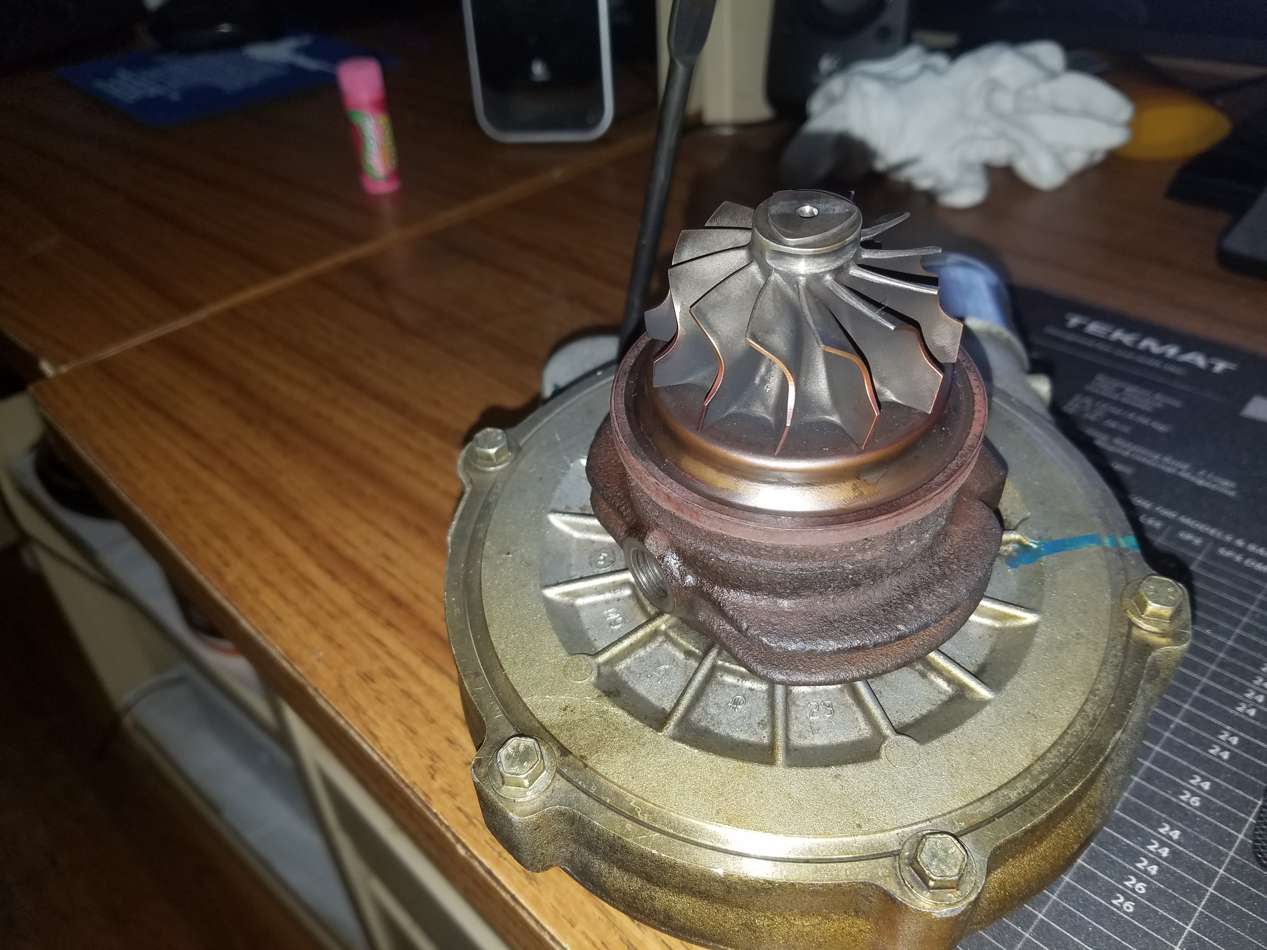 I actually remember you replying to my original thread before I bought the new housing haha.Yeah, here are some pictures of the housing I tried. When I installed it, the exducer was hitting the housing, so I'm assuming it was a 62 trim housing which is just a little too small for my turbine. And I thought the turbines can different between the two. I thought GT28 has a 53.85mm turbine with either a 62 or 76 trim. While the GT25 has a 53.0 mm turbine. When I measure my turbine I get 53.85mm with like a 67 or so trim. I haven't measured the compressor yet, but may take it apart just to see what it reads.