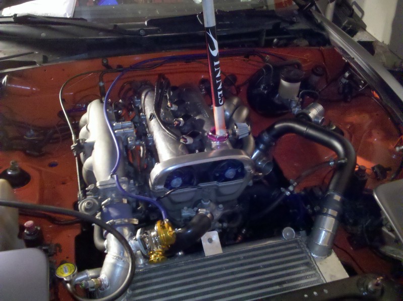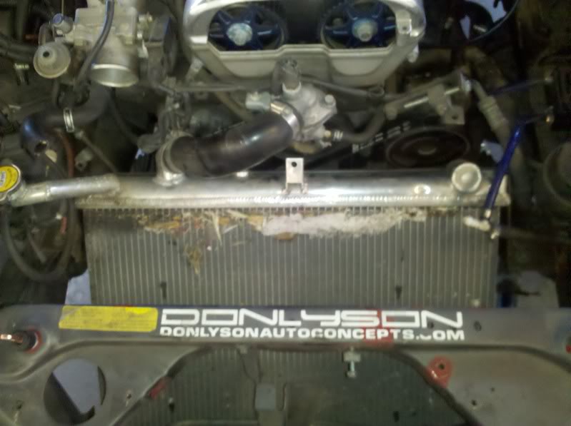 Ignore the trash on it and the stupid stickers and ----. This is when I first tore it all down to restore. This is how the radiator sits without the intercooler.