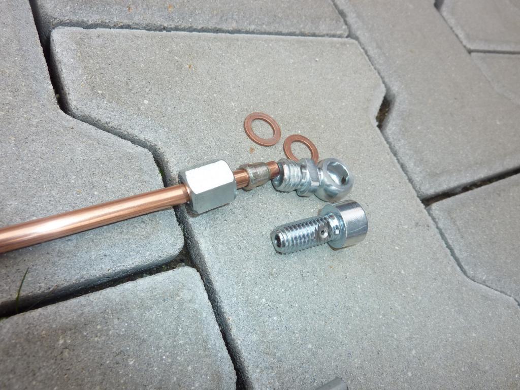 Alright, prices went up a bit since 2008, but its still under $40 for all the parts. i assume, based on the side of the banjos and bolts, that ill be using the port on the block next to the small port that my CURRENT line it attatched to. So, im gonna have to find a bolt to put in place of that port as well. But i think Lowes will be suitable for that application