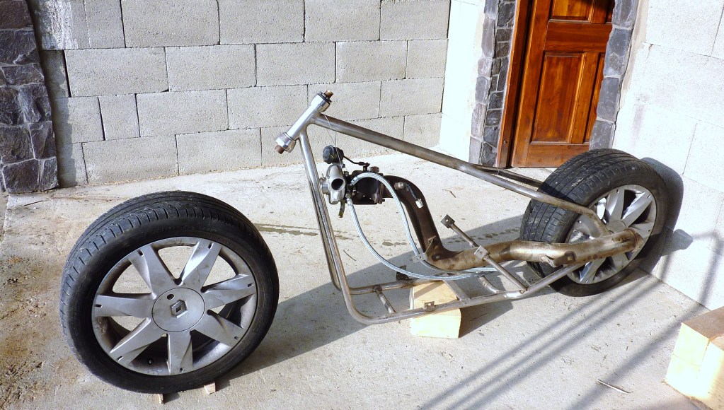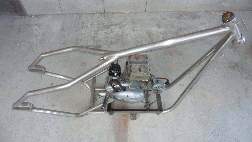 I was at a scrap yard a few weeks ago and found this frame under a fridge, 13 kg scrap price 30 euros! What to do next is not clear but possibly I will try something electric.